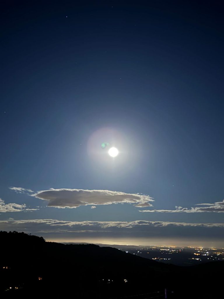 Existe uma variedade de retiros de meditação. Vou contar um pouco como é o meu, como é um retiro Ishaya. Bem, primeiro quero dizer que estou em um lugar lindo, uma montanha na Catalunha que se chama Mont Ral. Em um quarto com uma vista privilegiada em que vejo o Sol e a Lua nascerem. Ontem vi a lua cheia saindo do horizonte em um céu cor de rosa.