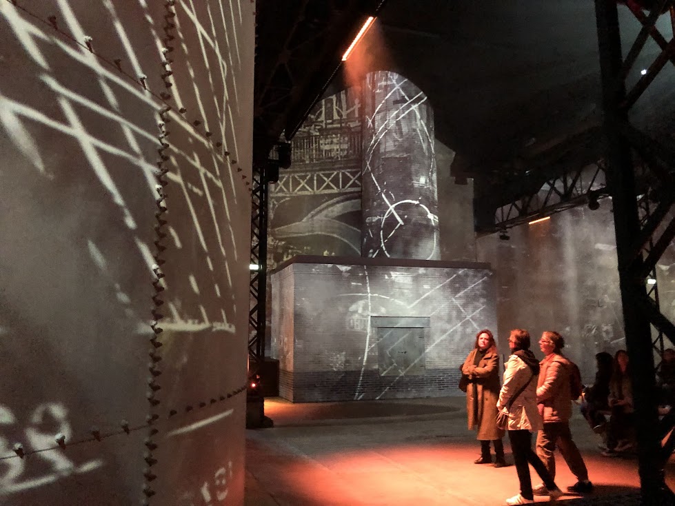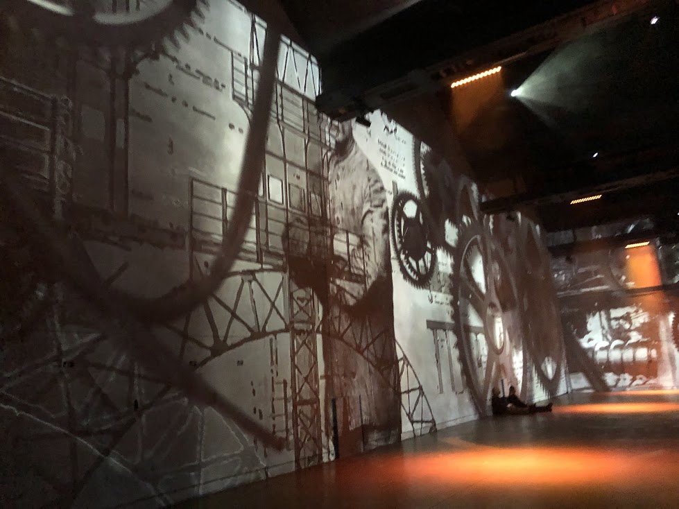 Onde a antiga manufatura de fundição — a Fonderie du Chemin Vert — respondia às necessidades navais e ferroviárias da Revolução Industrial francesa no século XIX, hoje 140 projetores de vídeo e um sistema de som espacial, distribuídos pelos 3.300 m², colocam a revolução digital a serviço da criação artística.